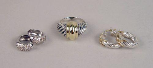 Total gross weight apx. 3.3dwts, together with a pair of cable-form sterling silver earrings and similar domed ring.