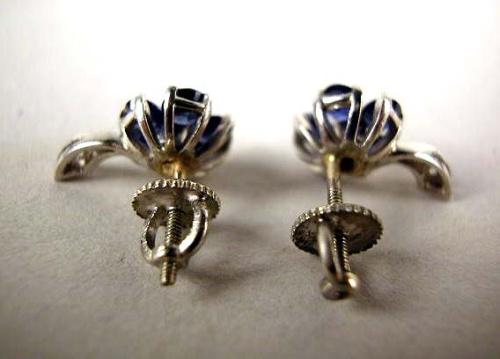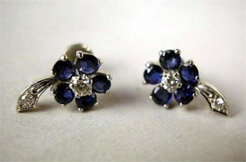 A PAIR OF 14K WHITE GOLD, DIAMOND, AND SAPPHIRE E