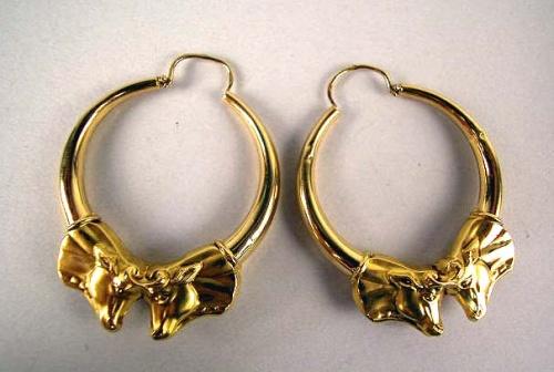 A PAIR OF 14K YELLOW GOLD DOUBLE COW EARRINGS Apx. 5.0 dwt.