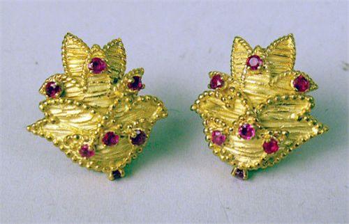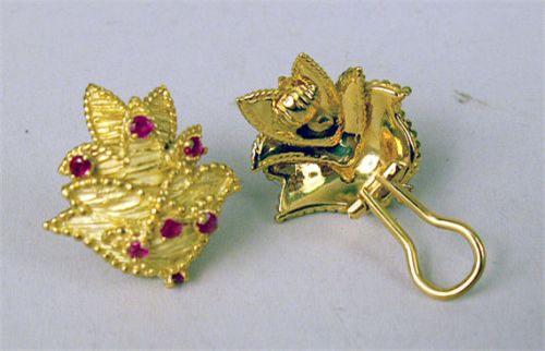 Each set with seven round cut prong set rubies. 1 1/4"l.