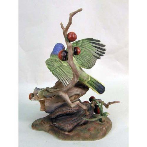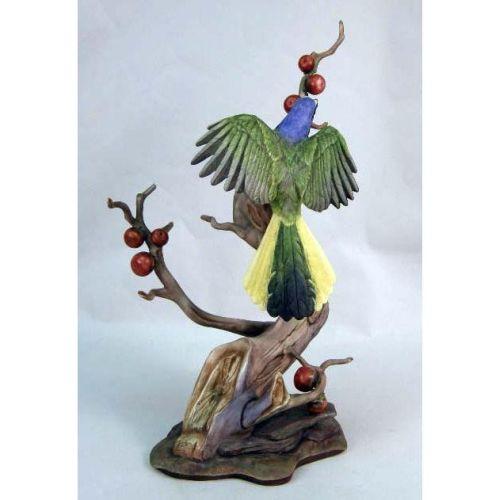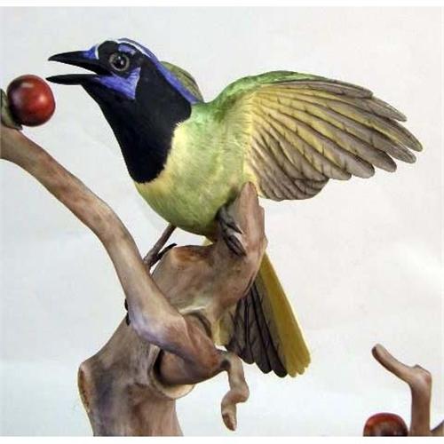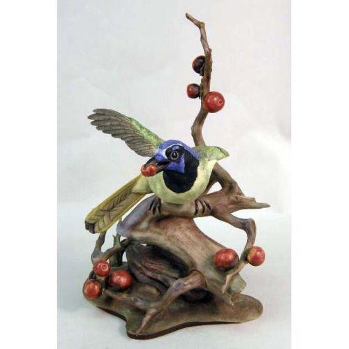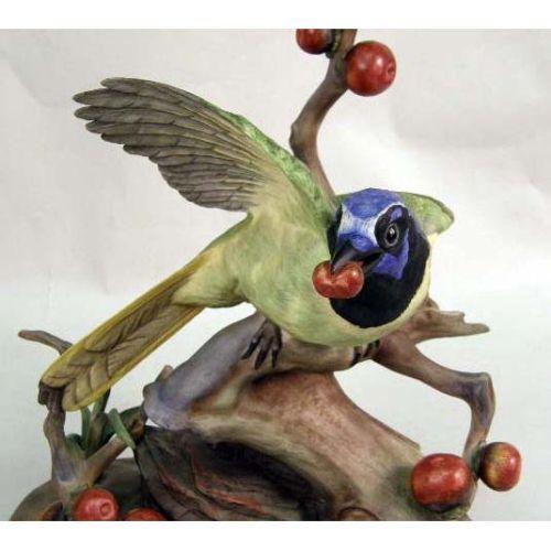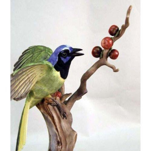 A PAIR OF BOEHM POLYCHROME DECORATED PORCELAIN FIGURES OF "GREEN JAYES"<BR><BR>Limited ed. #486F, made in USA, chip, 18 3/4"h