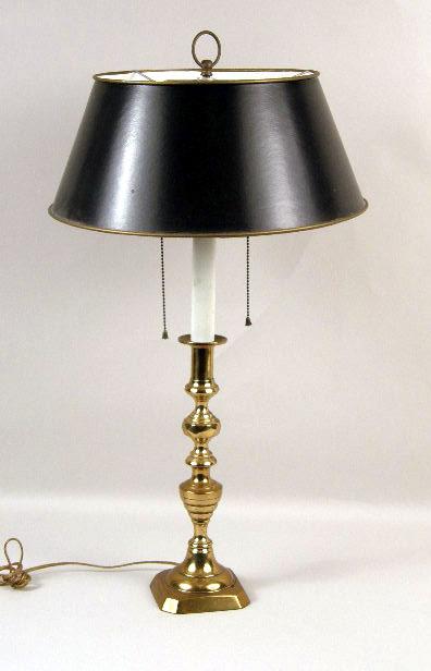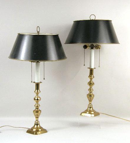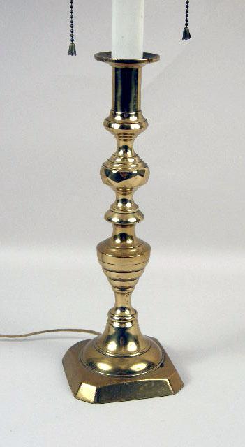 A PAIR OF BRASS CANDLESTICK-FORM LAMPS