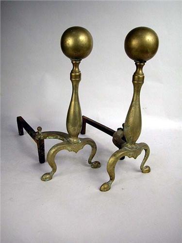 A PAIR OF BRASS CANNONBALL ANDIRONS AND FIRE FENDER;
