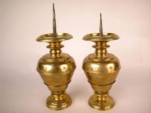 A PAIR OF BRASS PRICKET CANDLESTICKS; 7 1/2"h