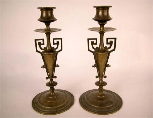 A PAIR OF BRASS URN MOTIF CANDLESTICKS; 9 1/2"h