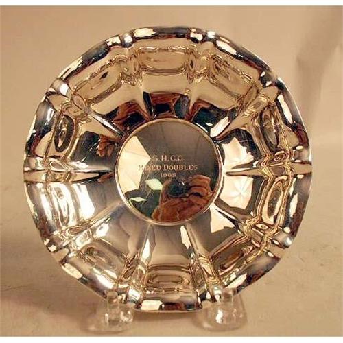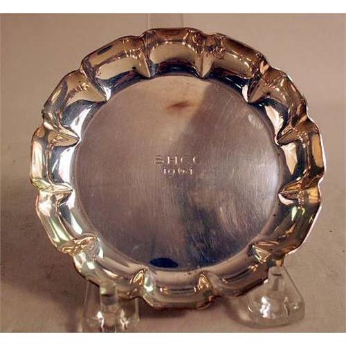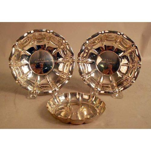 A PAIR OF CARTIER STERLING SILVER SCALLOPED RIMMED TROPHY BOWLS<BR><BR>Together with a Cartier sterling silver smaller trophy plate, 5-3/4"dia., weight apx. 9 T.O.