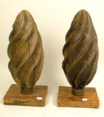 Mounted on associated bases, cracks, losses and wear, 27"h x 12"w x 9"d