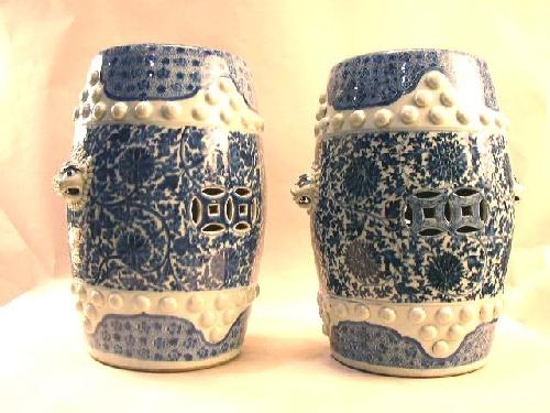 A PAIR OF CHINESE BLUE AND WHITE GARDEN SEATS; 18-3/4"h