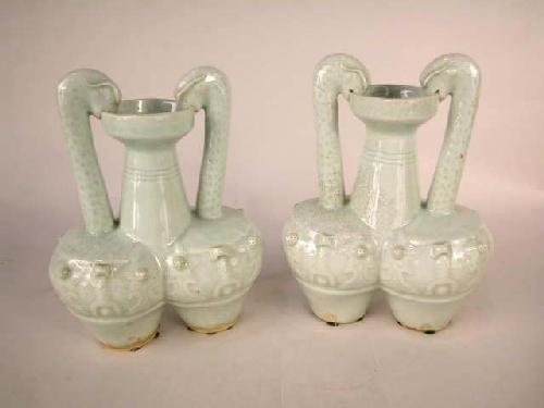 A PAIR OF CHINESE CELADON VASES; 9-1/2"h