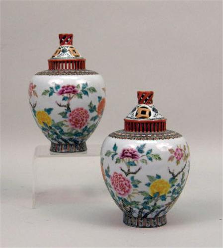 <b>A PAIR OF CHINESE EXPORT PORCELAIN COVERED VASES</b>