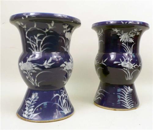 <b>A PAIR OF CHINESE-STYLE BLUE AND WHITE CERAMIC URNS</b>