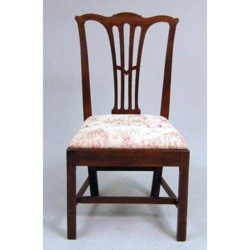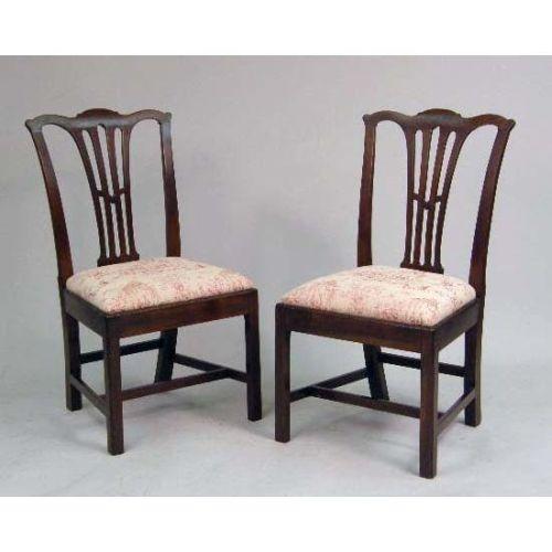 A PAIR OF CHIPPENDALE STAINED CHERRYWOOD SIDE CHAIRS<BR><BR>American, possibly Connecticut, some repairs, 39"h