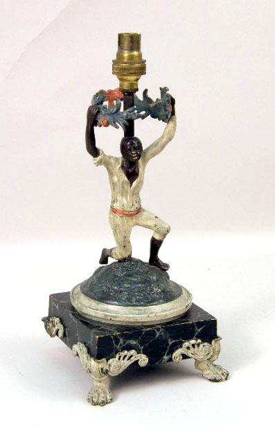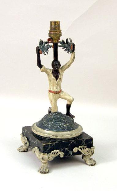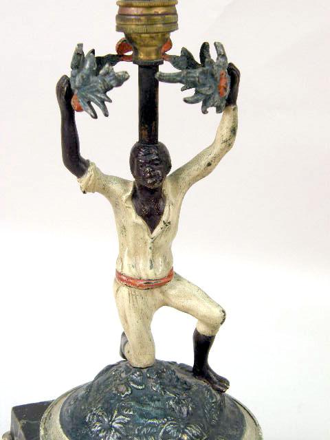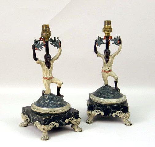 A PAIR OF COLD-PAINTED BRONZE BLACKAMOOR FIGURAL LAMPS