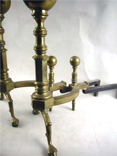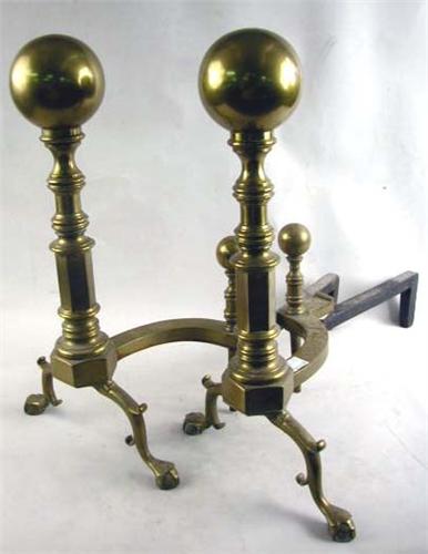 A PAIR OF COLONIAL REVIVAL LARGE BRASS ANDIRONS 22 1/2"h x 12"w x 24"d