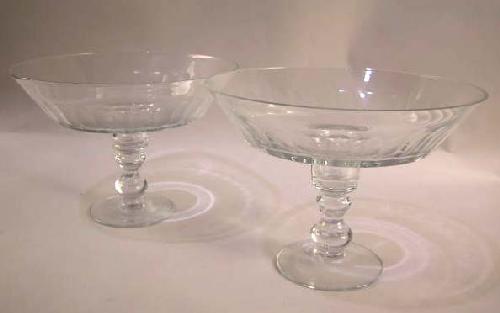 A PAIR OF COLORLESS GLASS THUMBPRINT FOOTED COMPOTES; 11 1/2"h x 8 1/2"w