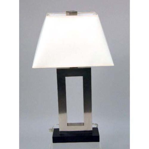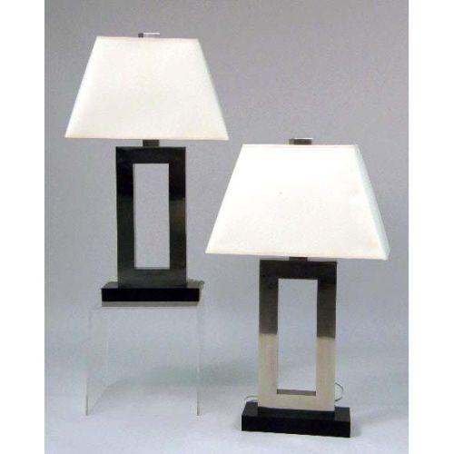 A PAIR OF CONTEMPORARY ALUMINUM AND BLACK STEEL TABLE LAMPS<BR><BR>30 1/4" h x 11" w x 5" d.