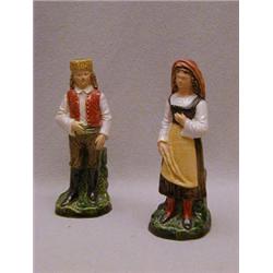A PAIR OF CONTINENTAL NOVELTY SMOKERS COMPANIONS, c.1890, modelled as a peasant boy and girl, majolica glazes, impressed 'BB, 1082' and '1083', height 17cm (2) £30-50