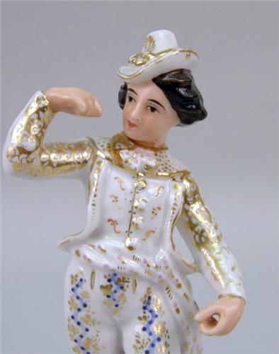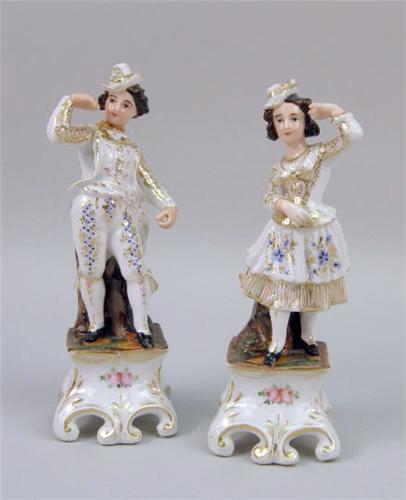 Depicting a girl and boy dancing. 8 3/4"h Restoration to boy`s hands.