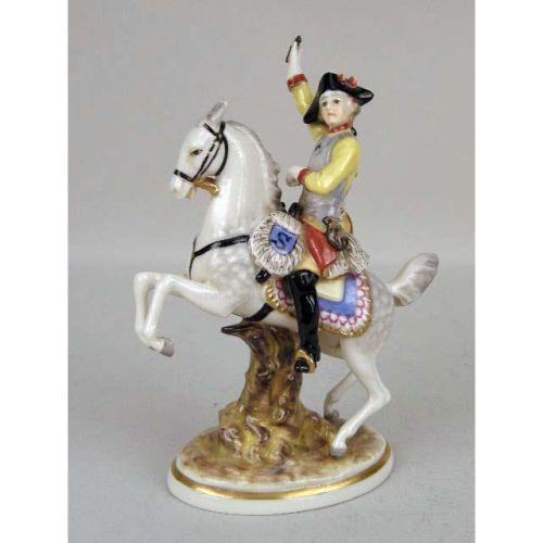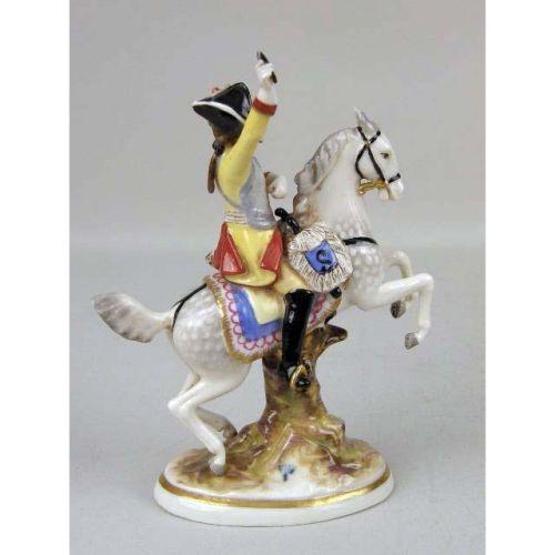 A PAIR OF CONTINENTAL PORCELAIN SOLDIERS ON HORSEBACK<BR><BR>On oval gilt rimmed bases, each 7-1/2"high, slight losses