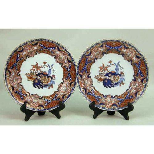 A PAIR OF COPELAND SPODE PLATES<BR><BR>English, 19th century, signed "Copeland & Garrett/late Spode + 3248", further incised "Spodes New Store". Each on a plate stand. 9 1/2" d. 4 pieces.