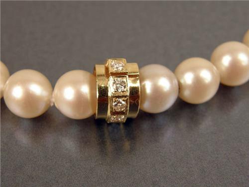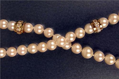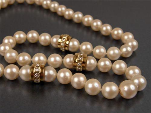 Comprising 145 uniform cultured pearls apx. 9mm, set with eight rondels, total eighty round brilliant cut diamonds, total weight apx. 4.80 carats, the necklaces can be worn together. 26"l and 28"l