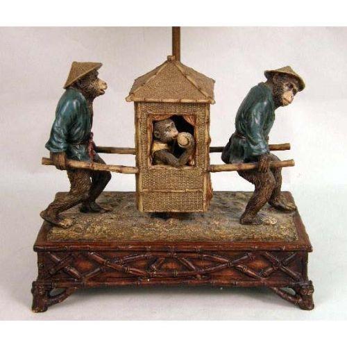A PAIR OF DECORATIVE MONKEY MOTIF TABLE LAMPS<BR><BR>28"h
