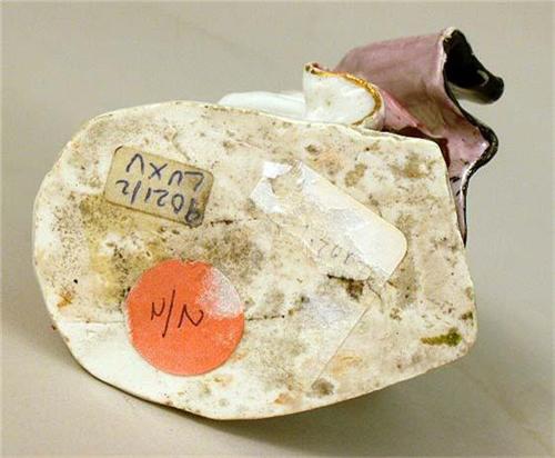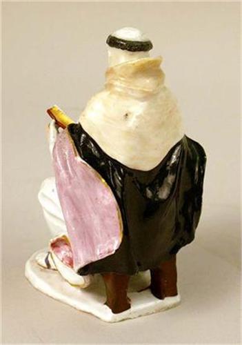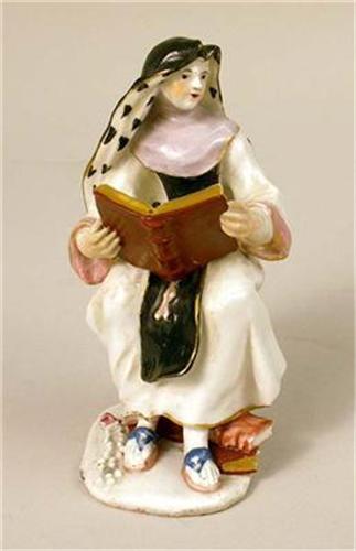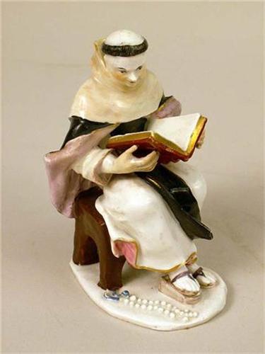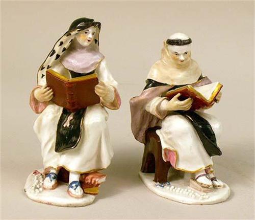 Of a monk and a nun, each seated on a stool. Some restoration. Nun 4 1/2"h.