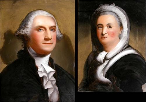 A PAIR OF EGLOMISE PORTRAITS OF GEORGE AND MARTHA WASHINGTON; possibly by William Matthew Prior, 23 1/2"h x 17 1/2"w