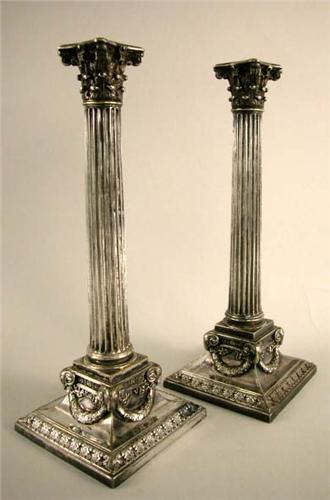 A PAIR OF ELKINGTON SILVER PLATED CANDLESTICKS; 12"h