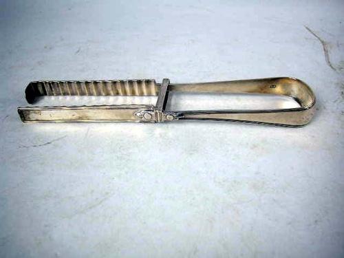 A PAIR OF ENGLISH SILVER ASPARAGUS TONGS; Bearing marks, maker W.S. 9 1/4"l