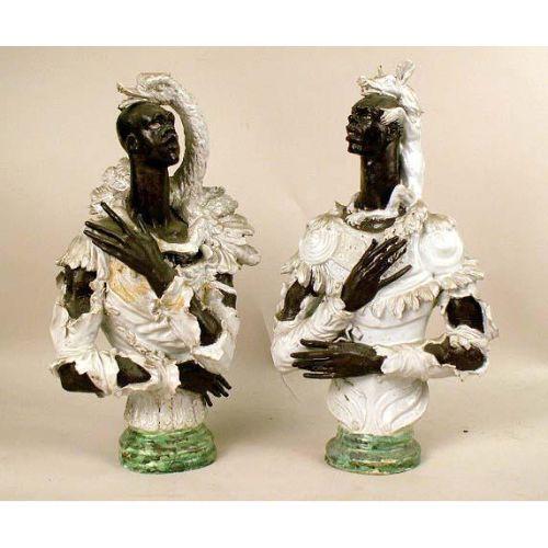 A PAIR OF FIGURAL SCULPTURES<BR><BR>Bears signature La Spada (Italian), repairs and losses, 16 1/4"h