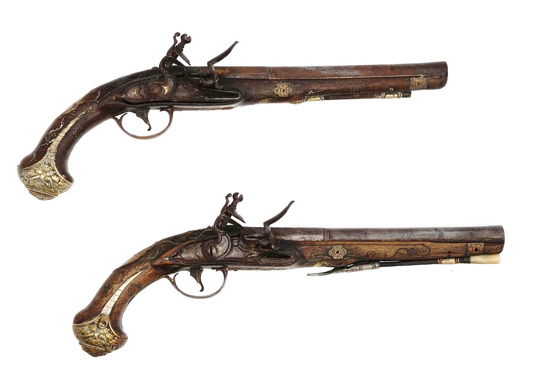 A PAIR OF FRENCH FLINTLOCK PISTOLS, 18TH CEN.