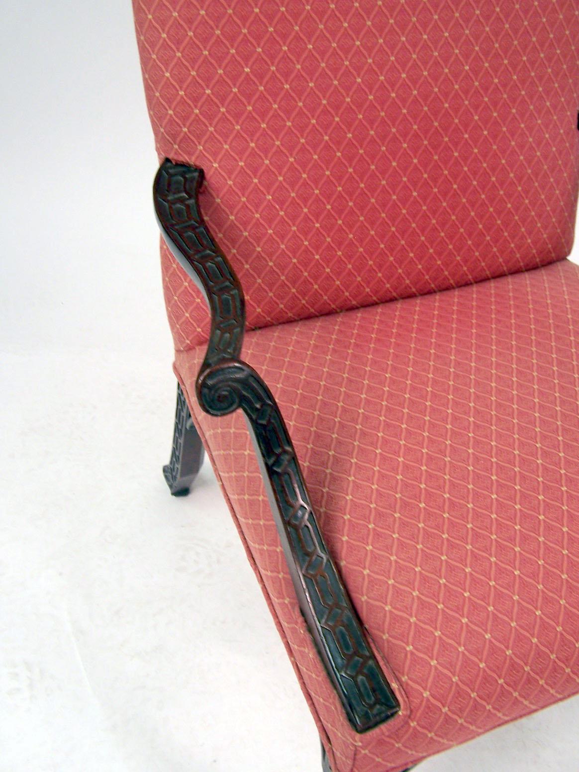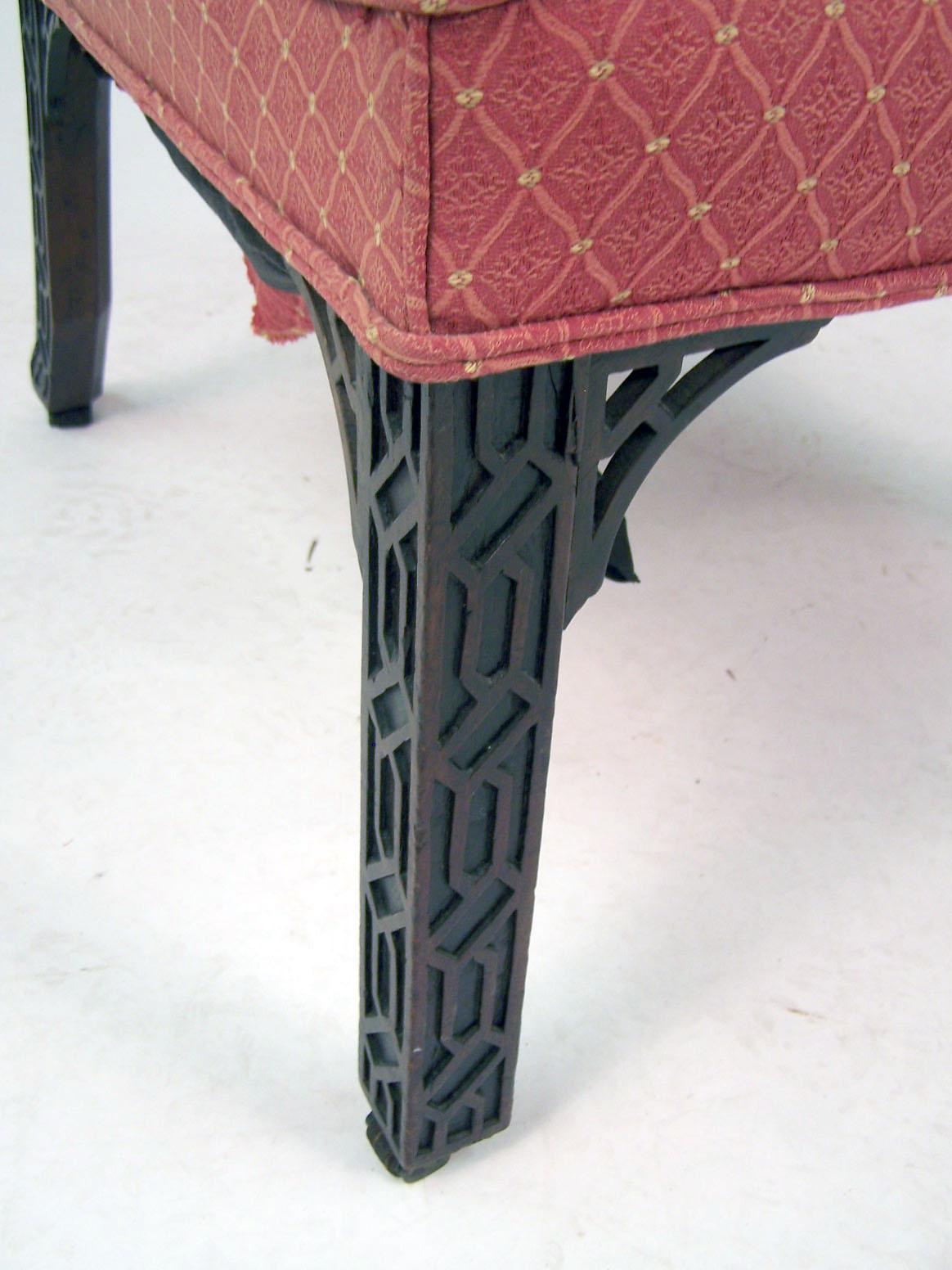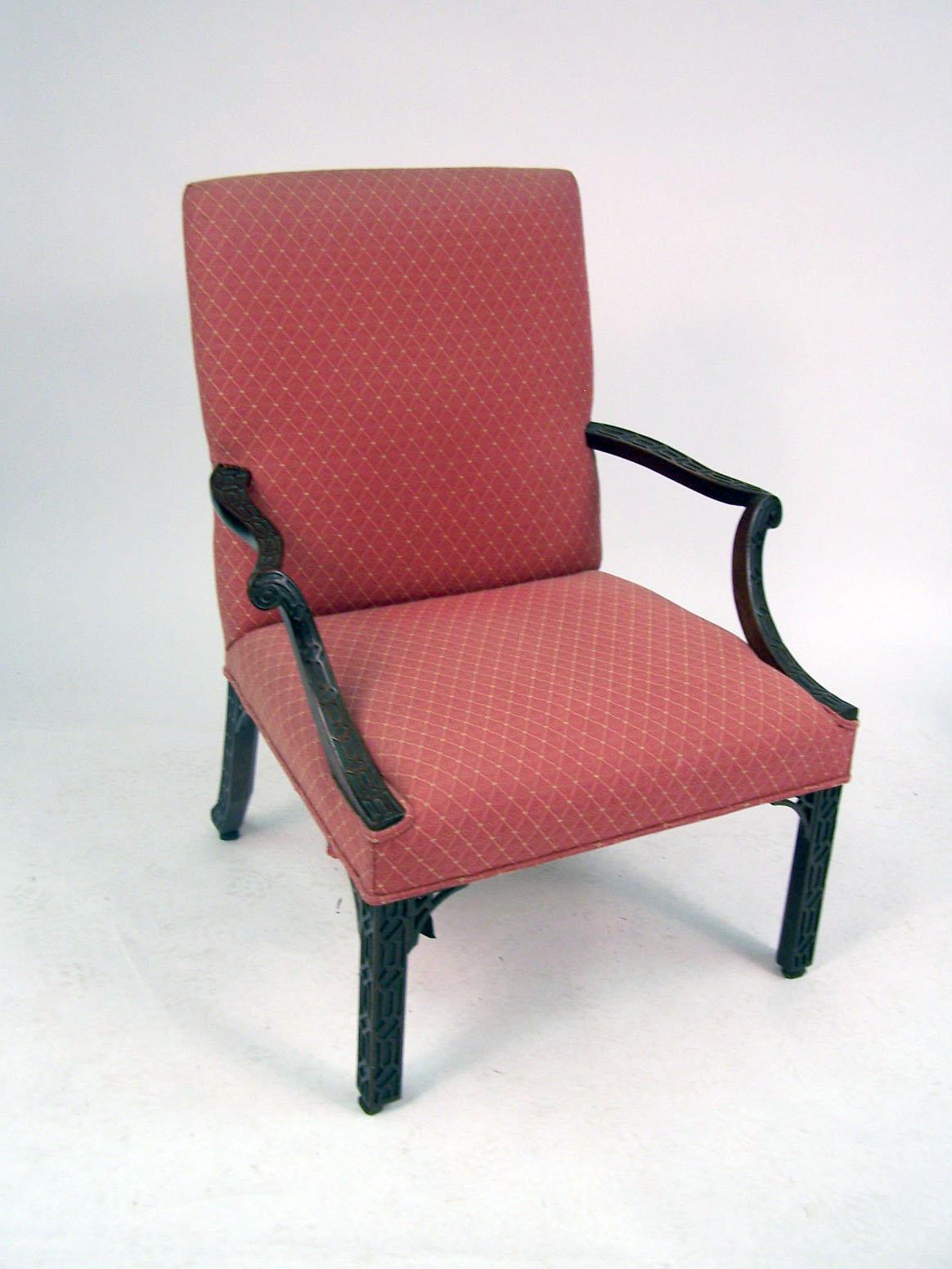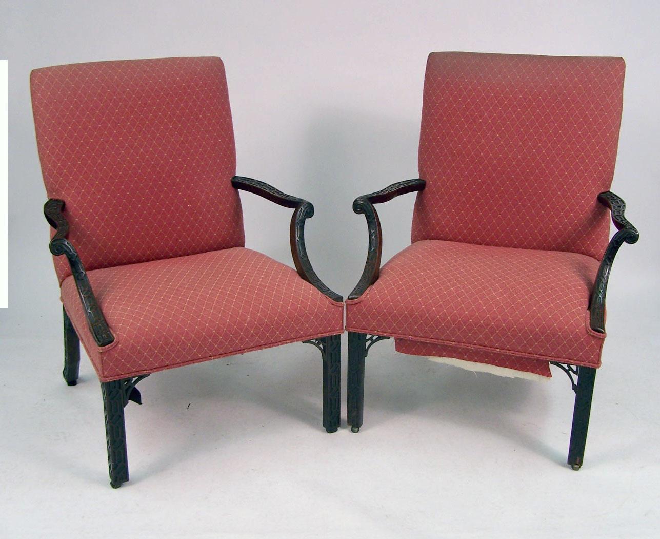 A PAIR OF GEORGE III BLIND FRET-CARVED MAHOGANY LIBRARY ARMCHAIRS