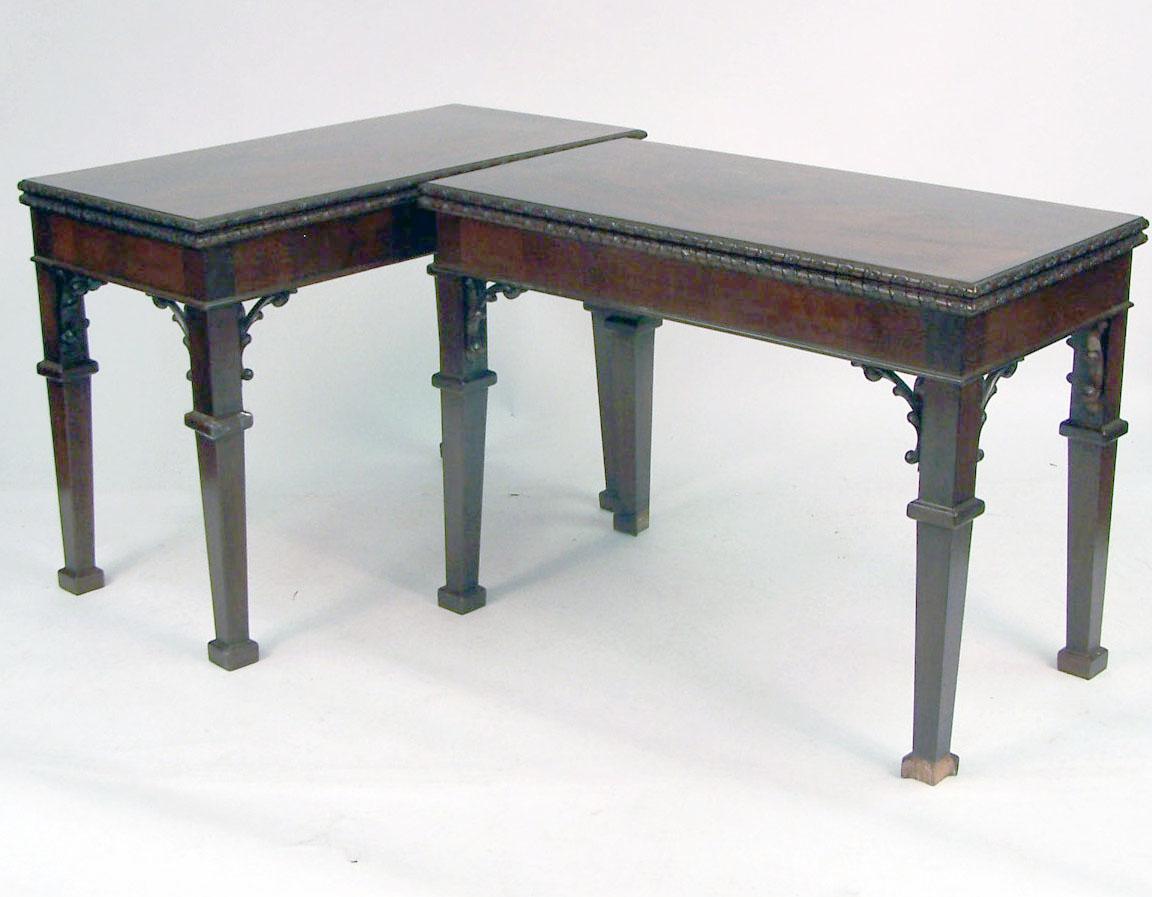 The tops bookmatched. Each 30"h x 42"w x 20 1/2" (closed) Both tops with wear to raised grain edges of wood, one with several moisture rings, one with two feet missing block end pieces, light scratches from wear and usage.