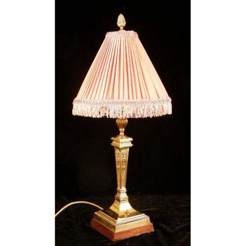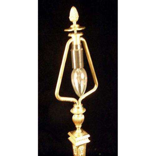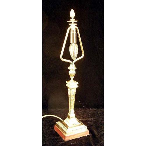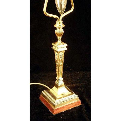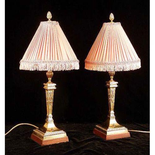 A PAIR OF GEORGIAN STYLE BRASS CANDLESTICK LAMPS<BR><BR>21"h, including shade