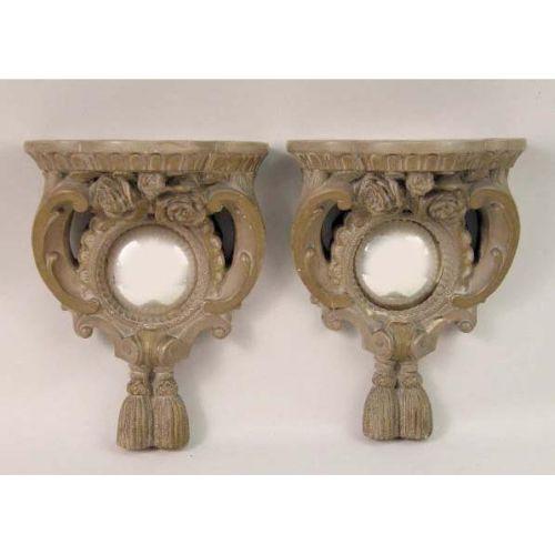 A PAIR OF GEORGIAN STYLE COMPOSITION MIRRORED WALL BRACKETS<BR><BR>Losses, 10-1/4"h