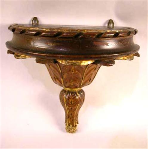 A PAIR OF GEORGIAN STYLE WALL BRACKETS; with rope and leaf-carved decoration, some wear. 9 1/2"h x 10 1/2"w