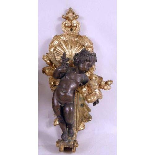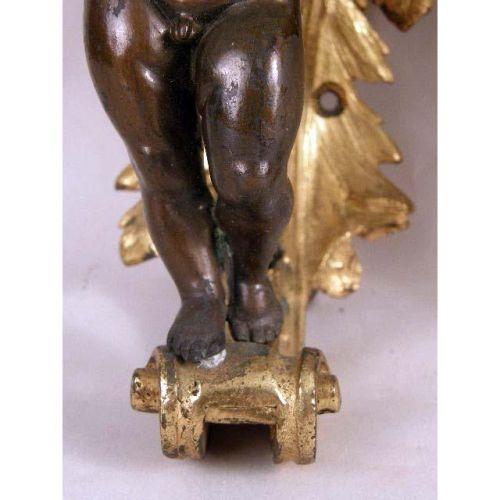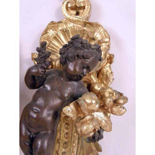 A PAIR OF GILT BRONZE PUTTI WALL SCONCES<BR><BR>12"h