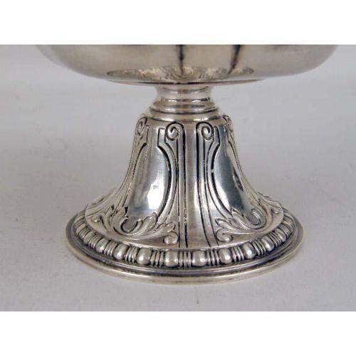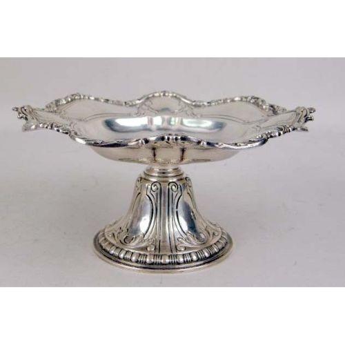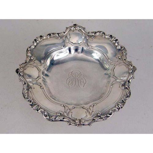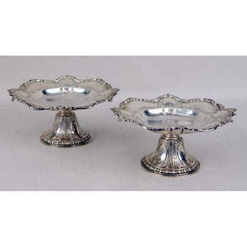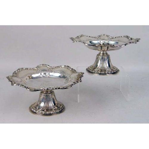 A PAIR OF GORHAM STERLING SILVER TAZZAS<BR><BR>Monogrammed EGR, with shell & scroll scalloped rim, border of alternating vacant cartouche, 8"diameter, 3-3/4"high, total weight apx. 29 T.O. Provenance: The Estate of Geraldine Rockefeller Dodge