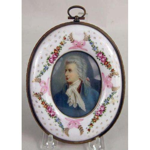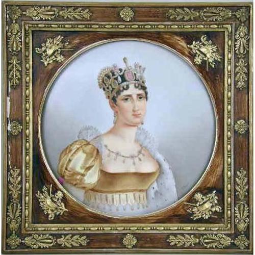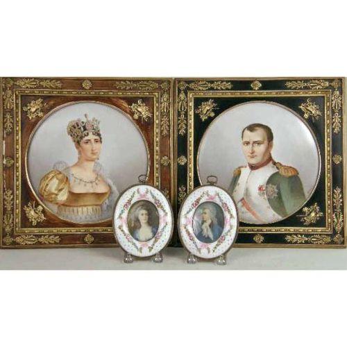 A PAIR OF HAND-PAINTED PORCELAIN KPM CIRCULAR PORTRAIT PLAQUES<BR><BR>Depicting Napoleon and Josephine, mounted in frames, signed O. Brun, 9-1/2"dia. Together with a pair of hand-painted miniature paintings of a gentleman and a lady in oval porcelain frames, signed N. Yoack, 3-1/4"h x 2-1/2"w