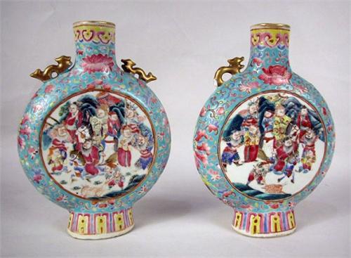 A PAIR OF IMARI GOURD-FORM BOTTLE/VASES