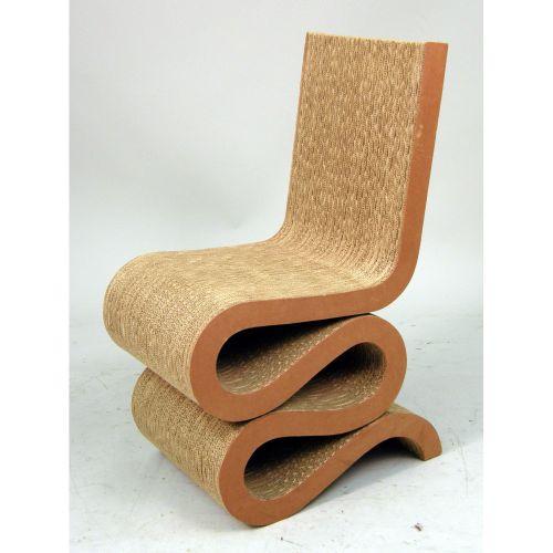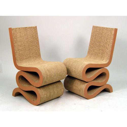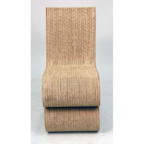 A PAIR OF LAMINATED CARDBOARD AND MASONITE "WIGGLE" CHAIRS<BR><BR>Designed by Frank Gehry. Some compression to cardboard, overall good condition. Provenance: Purchased by consignor`s parents in the early 1970s.