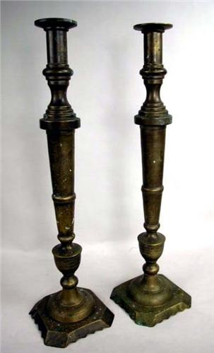 A PAIR OF LARGE BRASS CANDLESTICKS; 28"h