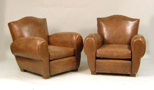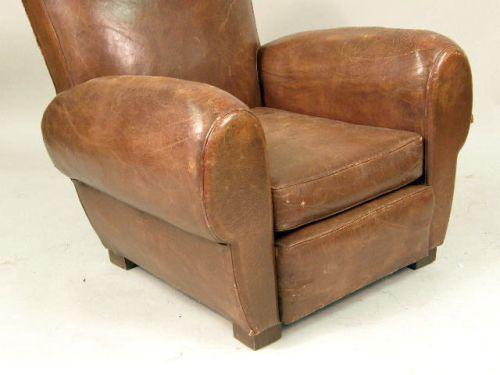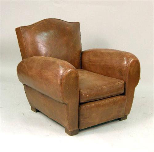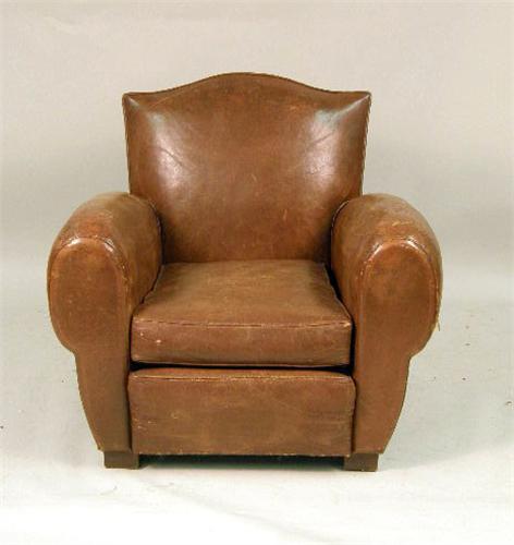 The leather seats reverse-upholstered in brown velvet. 32"h x 34"w x 37"d The leather with overall scattered scratching and some minor cracking to the seats and arms.