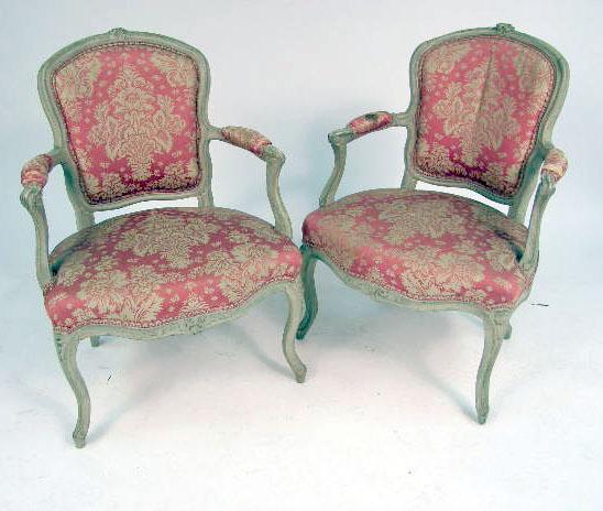 A PAIR OF LOUIS XV PAINTED AND CARVED BEECHWOOD FAUTEUIL