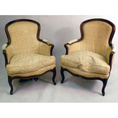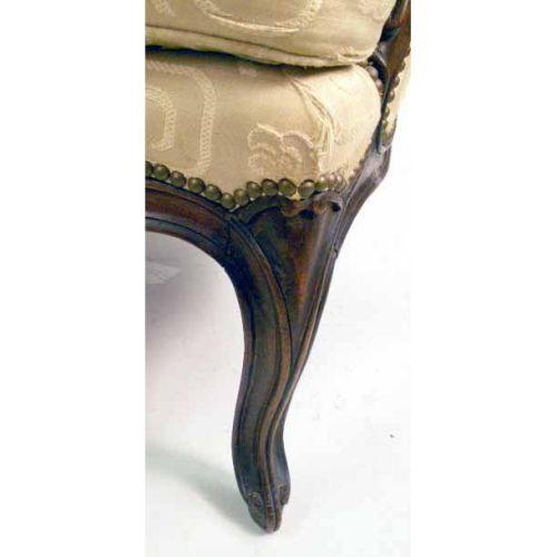 A PAIR OF LOUIS XV-STYLE CARVED WALNUT BERGERES<BR><BR>French