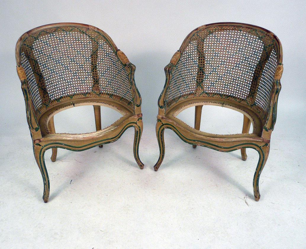 A PAIR OF LOUIS XV-STYLE PAINTED BARREL-BACK BERGERES