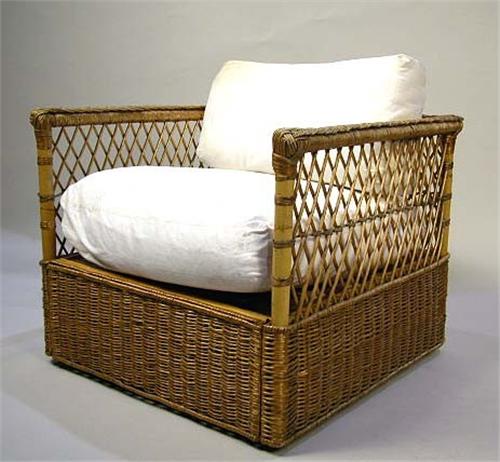 A PAIR OF MCGUIRE WICKER ARMCHAIRS; In natural finish