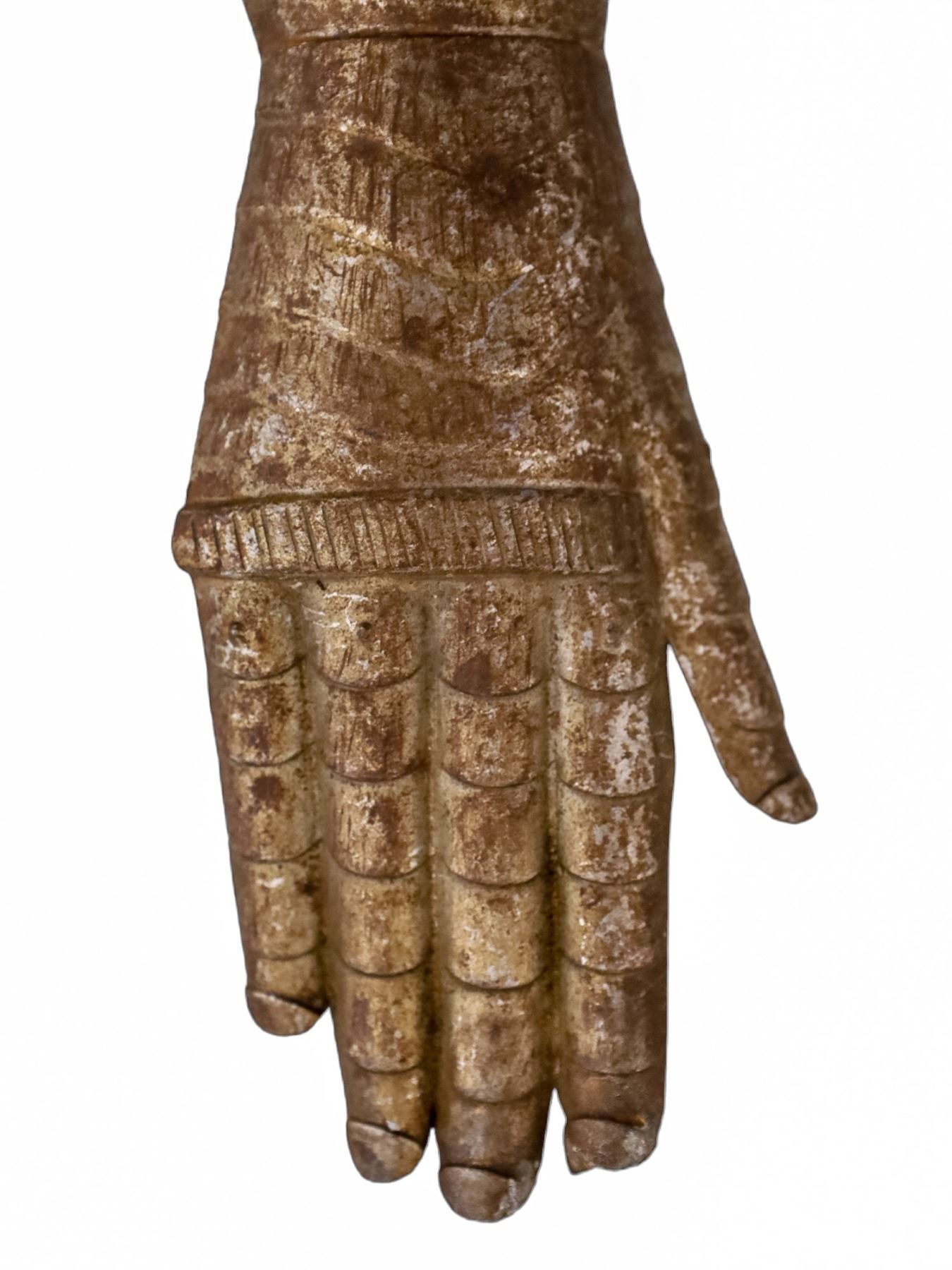 Good with minor traces of rust. One finger part is missing.