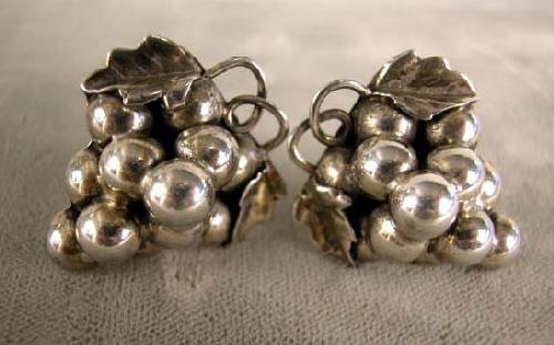 A PAIR OF MEXICAN STERLING SILVER GRAPE FORM EARRINGS;